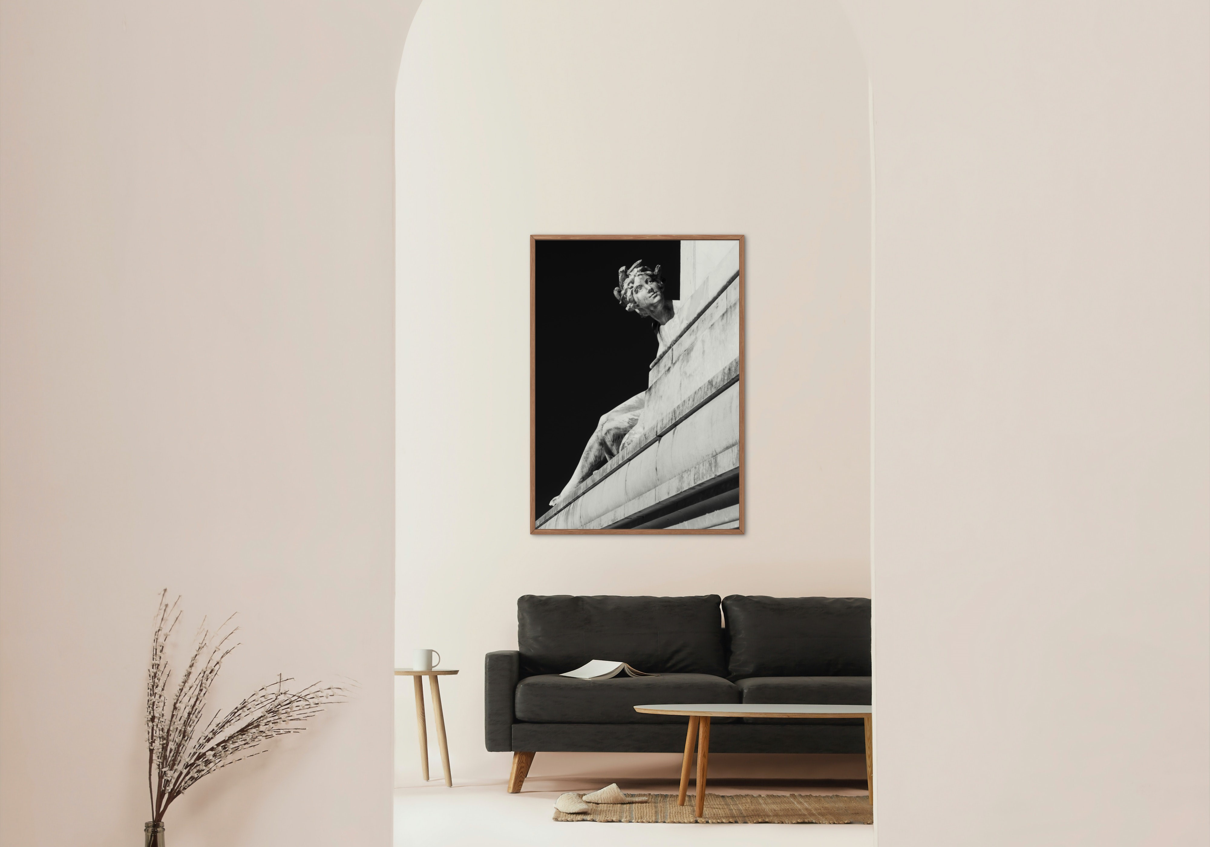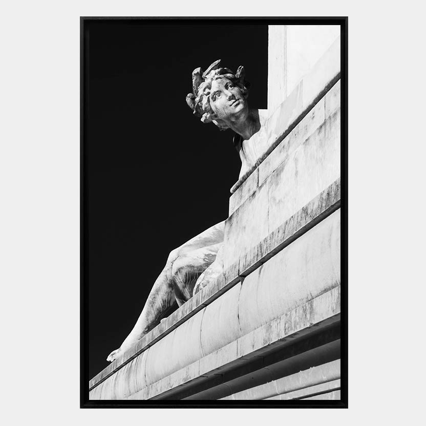 Impression sur papier photo Rauch satiné (250 g), contrecollé sur Dibond (plaque d’aluminium 2mm) et protégé par un film anti-UV invisible. Encadrement en caisse américaine bois, couleur noir.